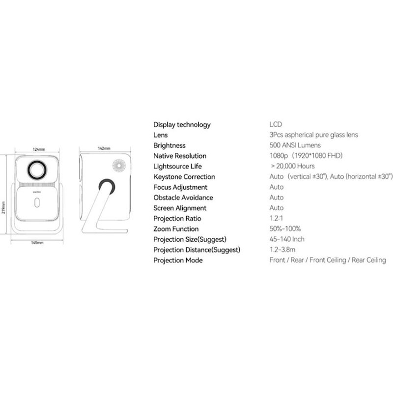 یکی از ویژگیهای منحصر به فرد T2 Ultra، پایه گیمبال ۱۲۰ درجهای آن است که به شما این امکان را میدهد تا به راحتی زاویه پروجکشن را تنظیم کنید. این قابلیت باعث میشود بتوانید تصاویر را به طور مستقیم روی دیوار یا حتی سقف بیاندازید، که برای محیطهایی که نمیتوان پروژکتور را به طور مستقیم مقابل صفحه نمایش قرار داد، بسیار کاربردی است. این ویژگی به شما آزادی عمل بیشتری برای تنظیم محل قرارگیری پروژکتور میدهد و نیاز به نصب پیچیده یا پایههای ثابت را از بین میبرد.